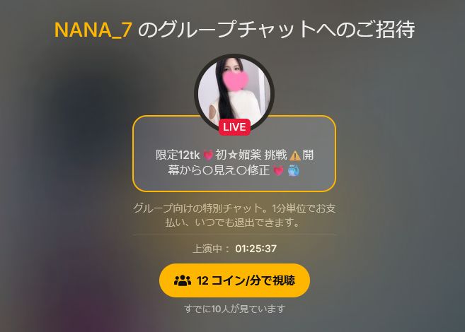 1対1だけでなく、ほかの視聴者と一緒に盛り上がれるのが「グループショー」や「チケット制ショー」です。公開ルームの延長線上にある有料ショーの形で、あらかじめ決められた内容や時間に合わせて、複数のユーザーが同じショーに参加します。トークンを支払って入室すると、その時間だけ特別な演出や内容を楽しめるのがポイントです。