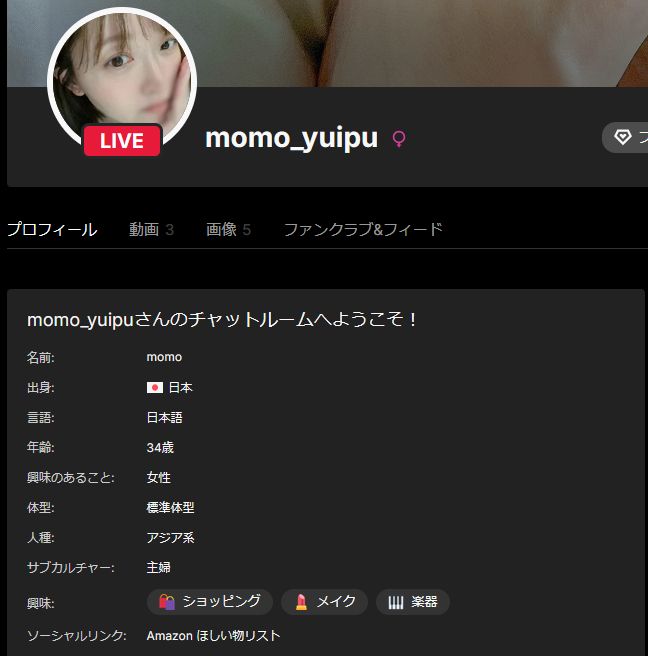 ストチャ(ストリップチャット)では、自分のプロフィールを設定することができます。プロフィールでは自分の年齢や職業を公開することができ、ランクや画像も表示することができます。